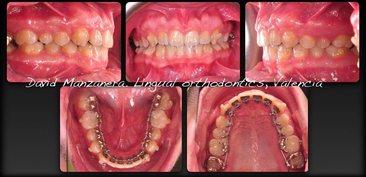 Imágenes del antes y después caso clínico sobremordida profunda tratado con ortodoncia lingual
